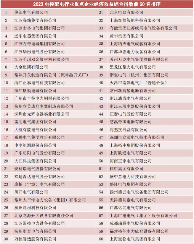 近日,廣州市半徑電力銅材有限公司(以下簡稱“半徑銅材”)在電控配電行業(yè)中再創(chuàng)佳績,榮登中國電器工業(yè)協(xié)會電控配電設(shè)備分會發(fā)布的2023年度多項重磅榜單,包括“工業(yè)總產(chǎn)值第27名”、“銷售產(chǎn)值第30名”、“工業(yè)增加值第16名”、“經(jīng)濟效益綜合指數(shù)第12名”、“總資產(chǎn)貢獻率第37名”以及“資本保值增值率第4名”。