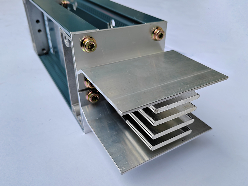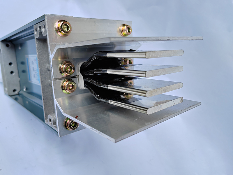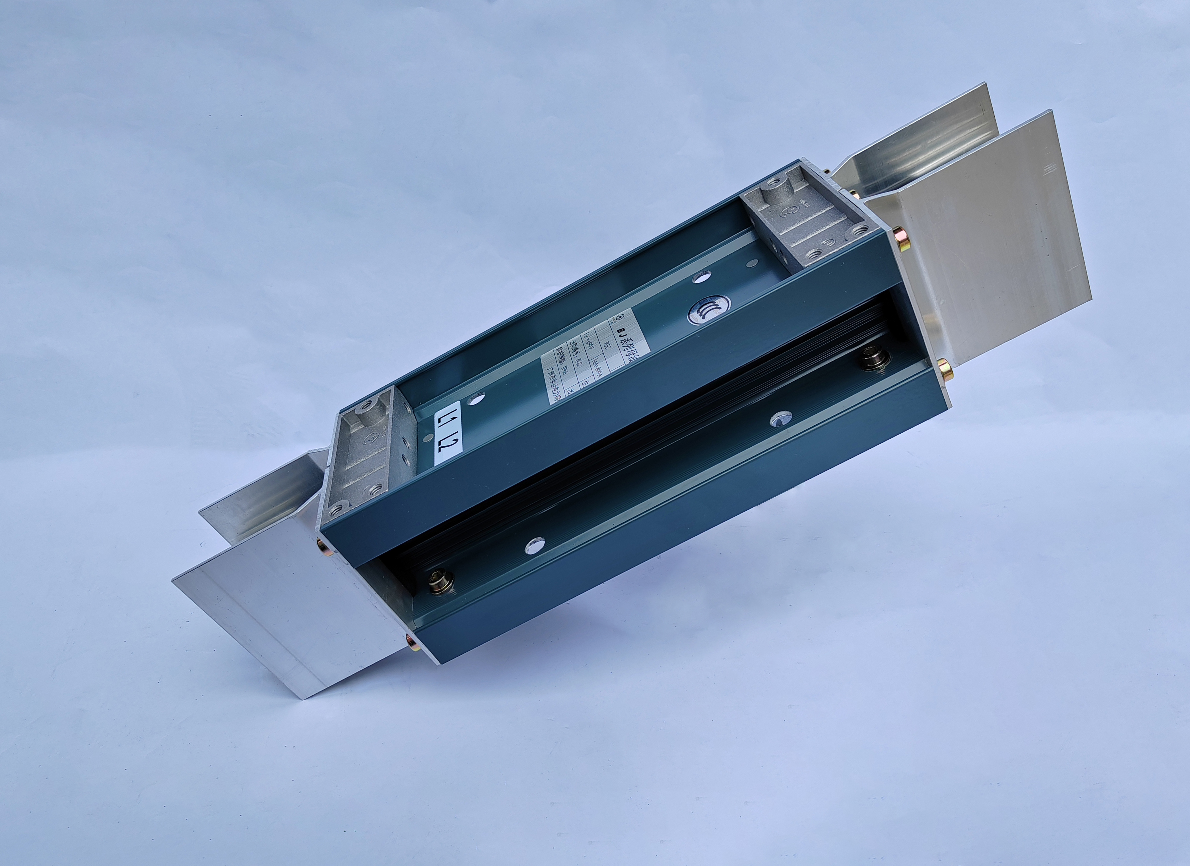 母線槽導(dǎo)體采用TMY系列的T1銅排,每條相排表面分別包覆兩層聚脂薄膜作為絕緣層,端部留有至少45mm裸露面供安裝連接器,銅排按相序放入鋁型材外殼,通過蓋板和側(cè)板固定導(dǎo)體。BJC系列母線槽分為15種,范圍在250A-6300A。